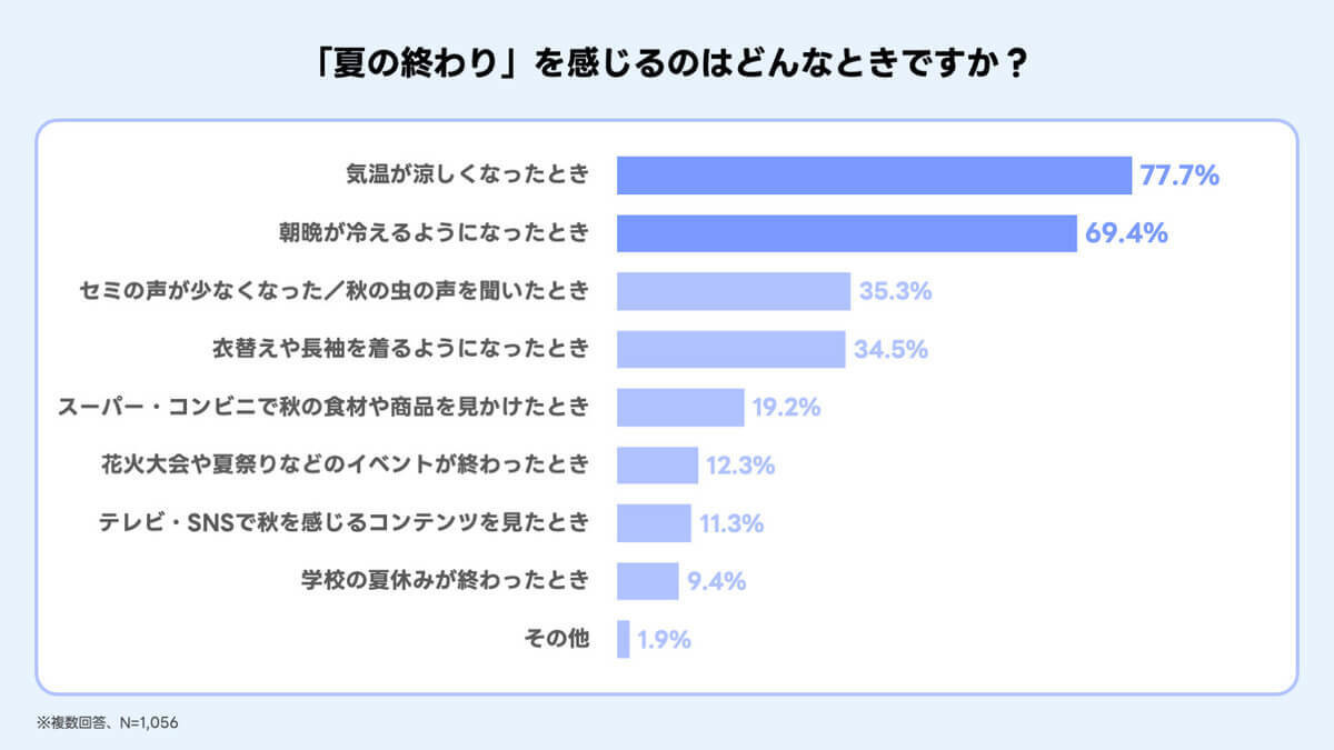 アンケートで「夏の終わりを感じるのはどんなとき?」と聞いたところ、最も多かったのはやっぱり「気温が涼しくなったとき」。という結果だったとのことです。