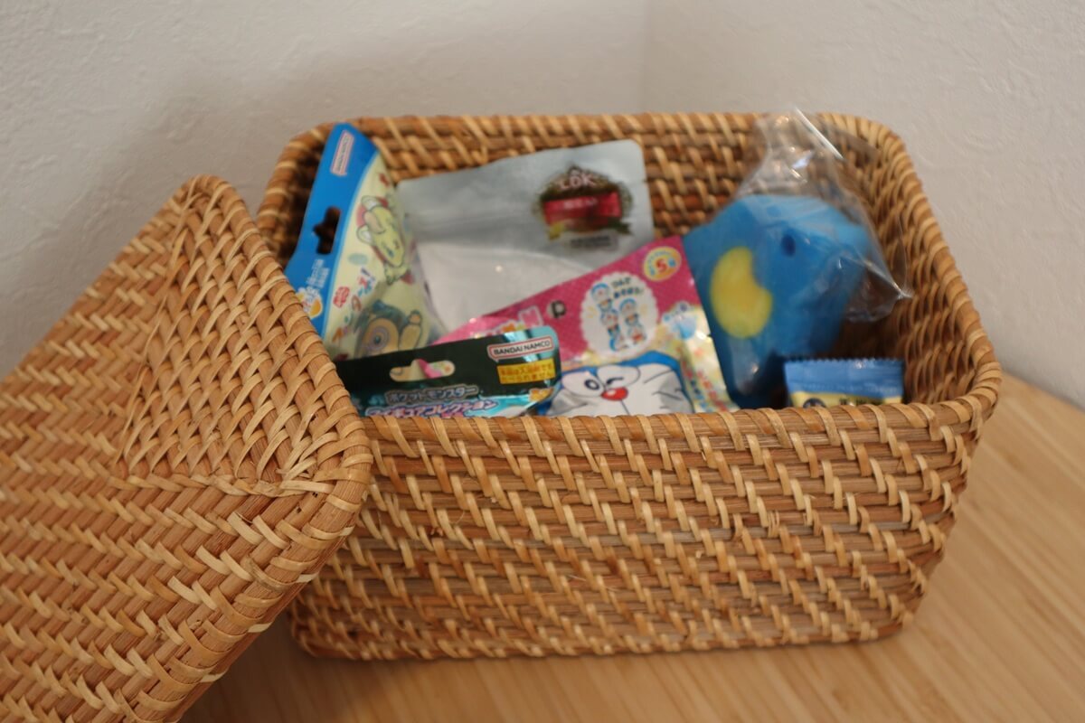 子どもの喜ぶ物は派手な色が使われていることが多く、見える収納だと、どうしてもごちゃついて見えてしまいます。