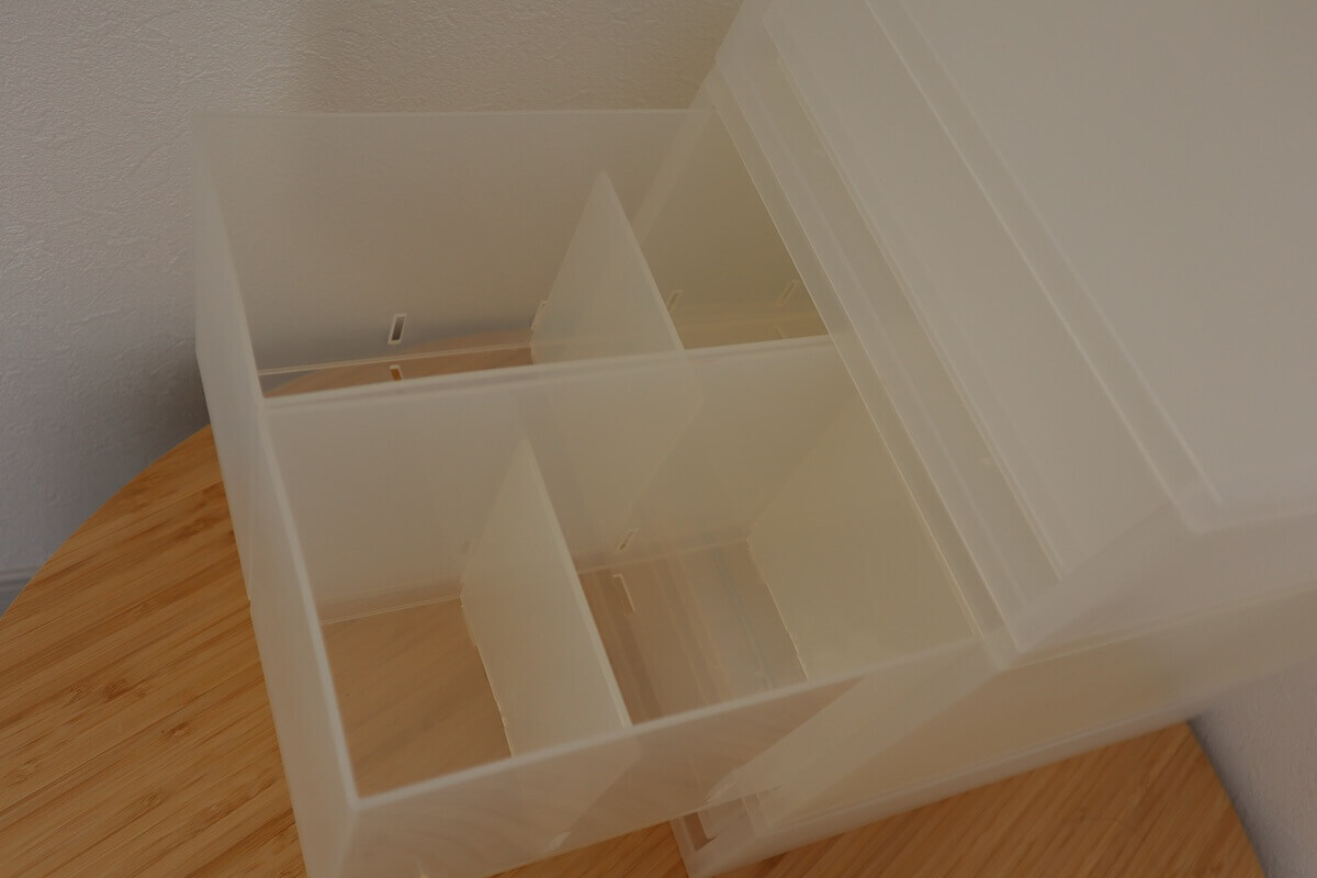 高さがあるタイプの引き出しは、仕切りも自由に動かすことができます。