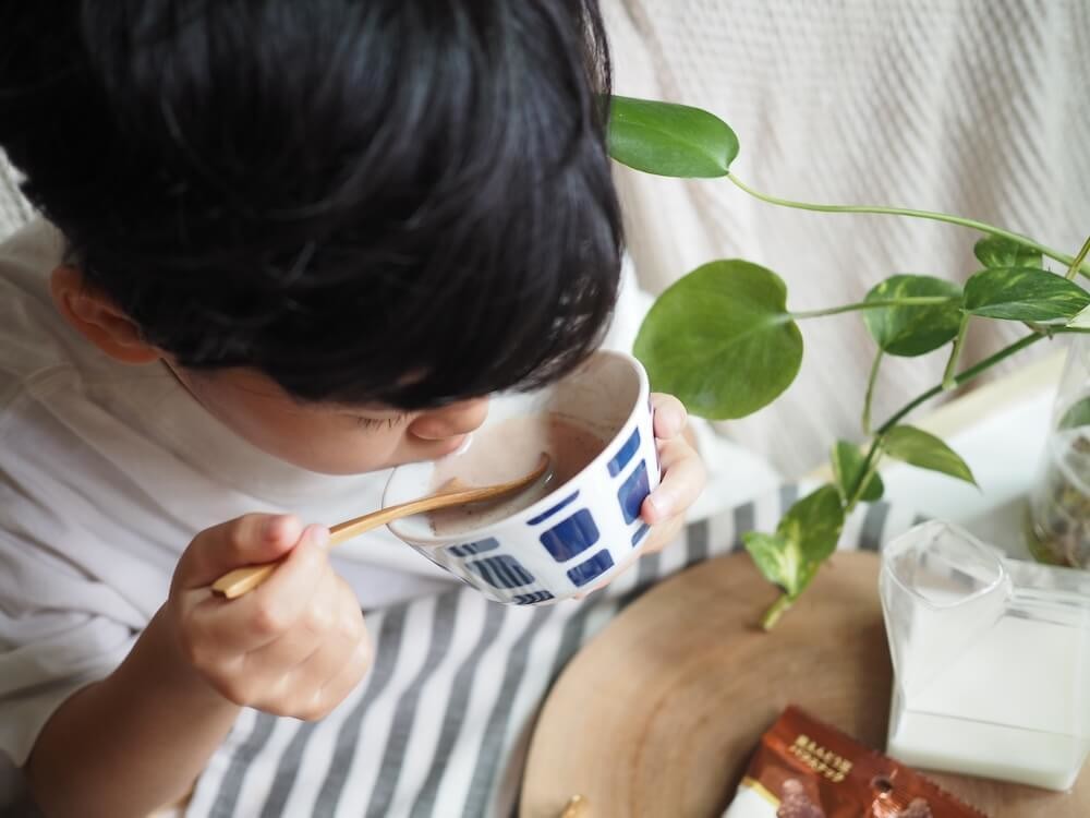「息子はおやつの時間に牛乳をかけるのが大好き!カカオ味に牛乳をかけて、チョコミルクにして楽しんでいます。割としっかりした甘みがあるので、残った牛乳もおいしく飲み干しています!」