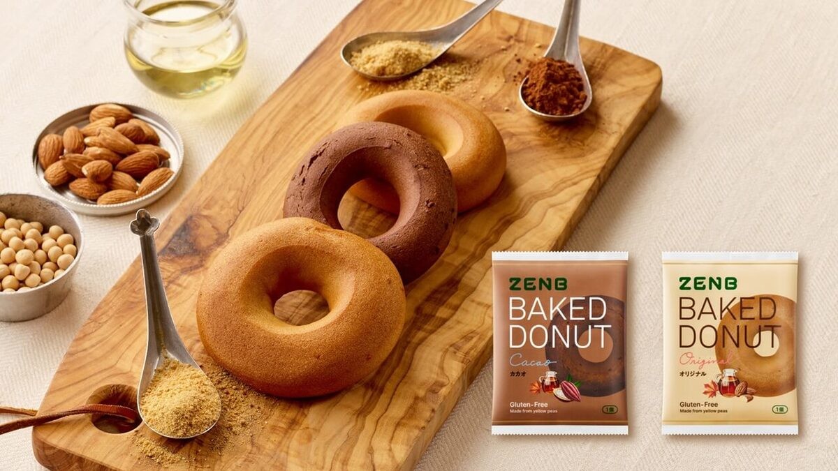 「ゼンブハッピー」に続き登場した「ZENB BAKED DONUT(ゼンブベイクドドーナツ)」。小麦粉は不使用で、黄えんどう豆の粉をメイン原料として使用し、揚げずにふんわり焼いて仕上げています。