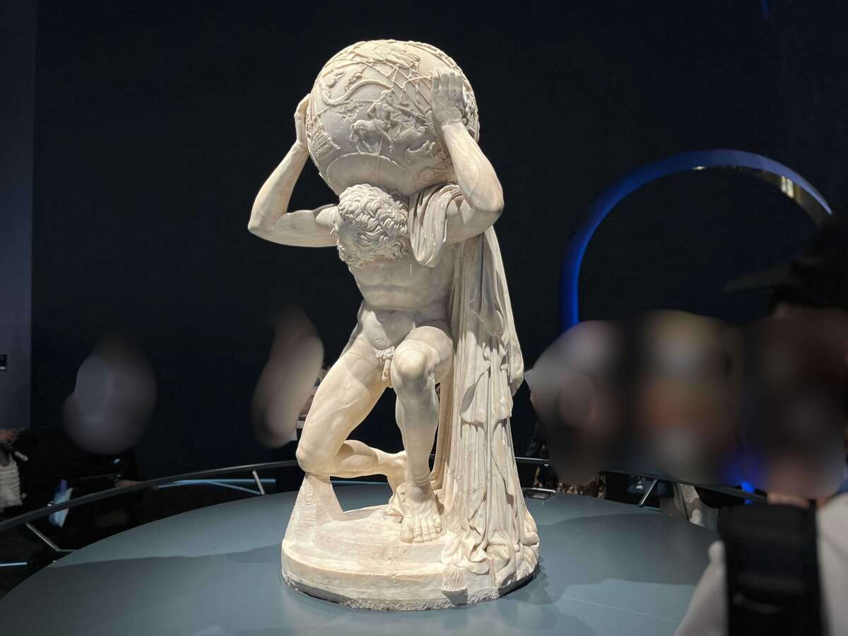まず圧倒されるのが、紀元2世紀の大理石彫刻「ファルネーゼ・アトラス」。日本初公開のナポリ国立考古学博物館の至宝です。