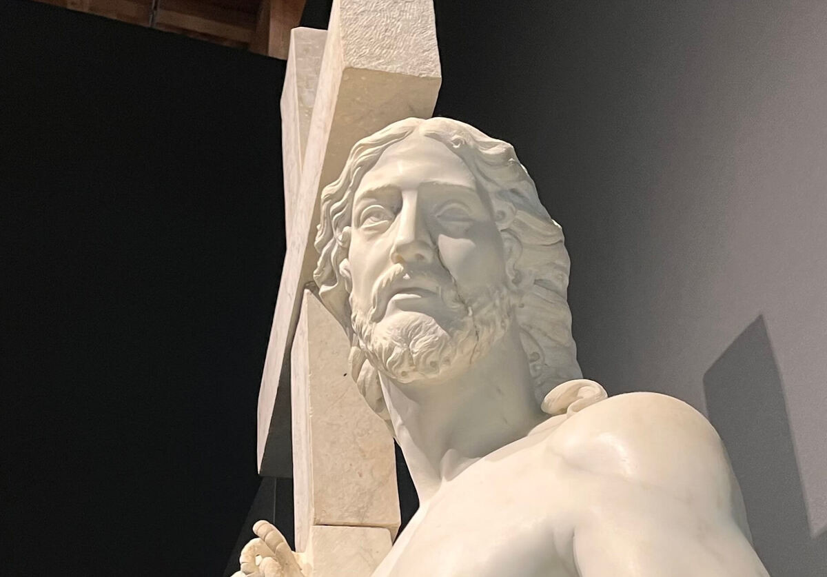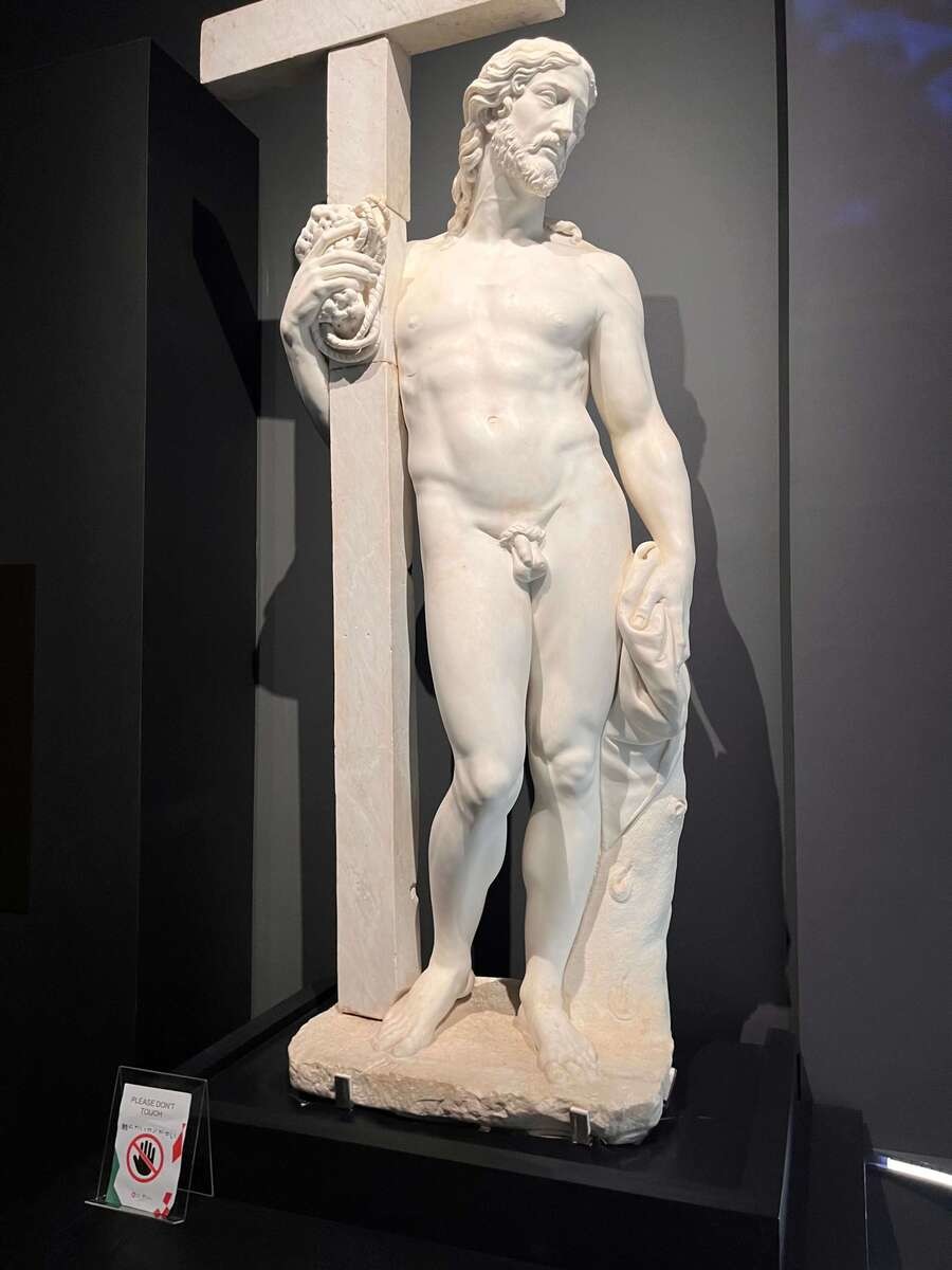 次に目を奪われるのは、1514年〜1516年頃に製作された、ミケランジェロ・ブオナローティ(1475年〜1564年)の『復活のキリスト』。高さはおよそ205cmの大理石像です。