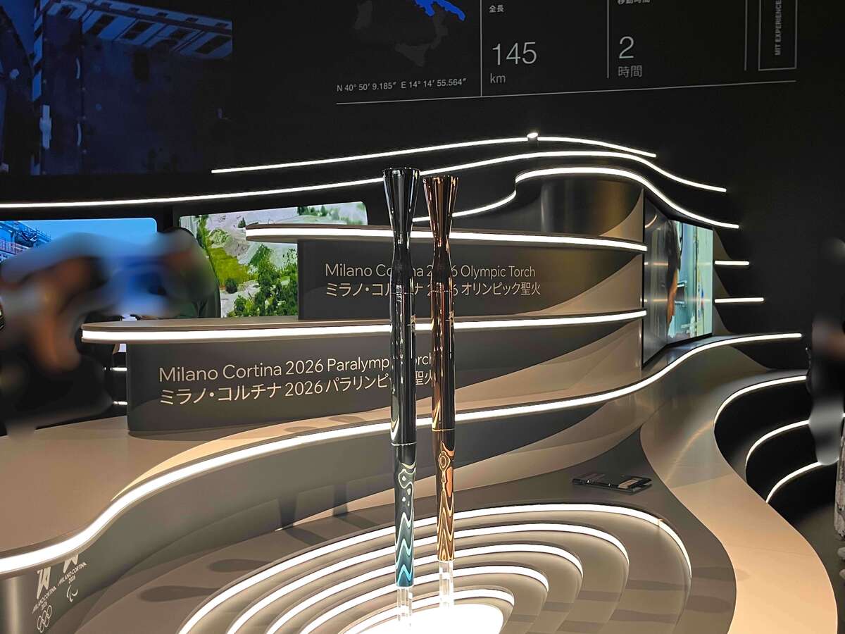 建築家カルロ・ラッティによってデザインされた、2026年ミラノ・コルティーナ冬季オリンピック2本の聖火が世界初公開。いよいよ来年にせまったイベントの大切な聖火も、日本のために特別に展示されました。