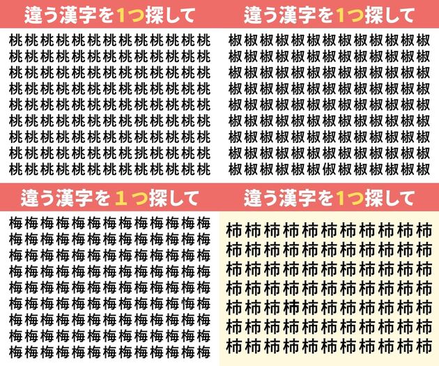 「柿」に紛れ込んだ1文字を見つけて!
