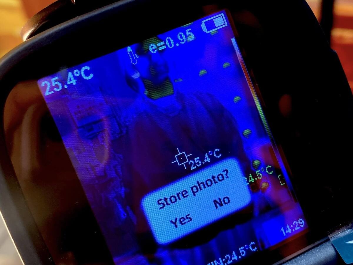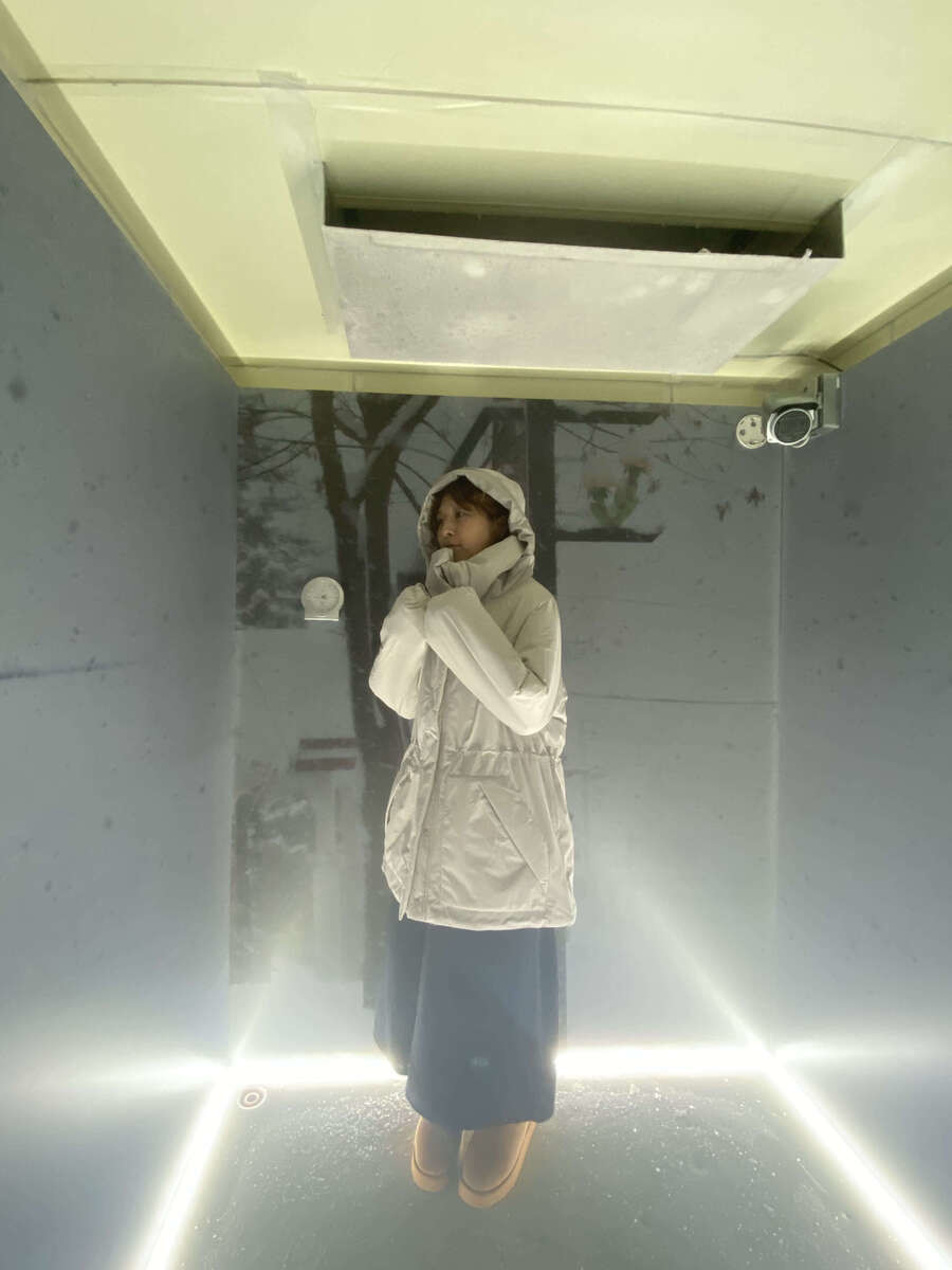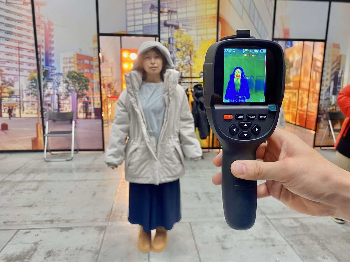 発表会では断熱効果を体験。着用後、−16℃の部屋で過ごしたのち、外に出てすぐにサーモグラフィーで体温を確認してみました。