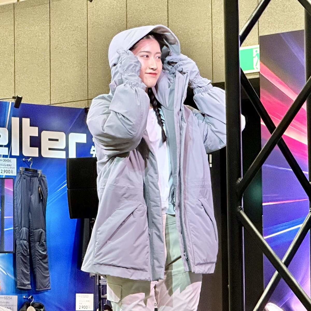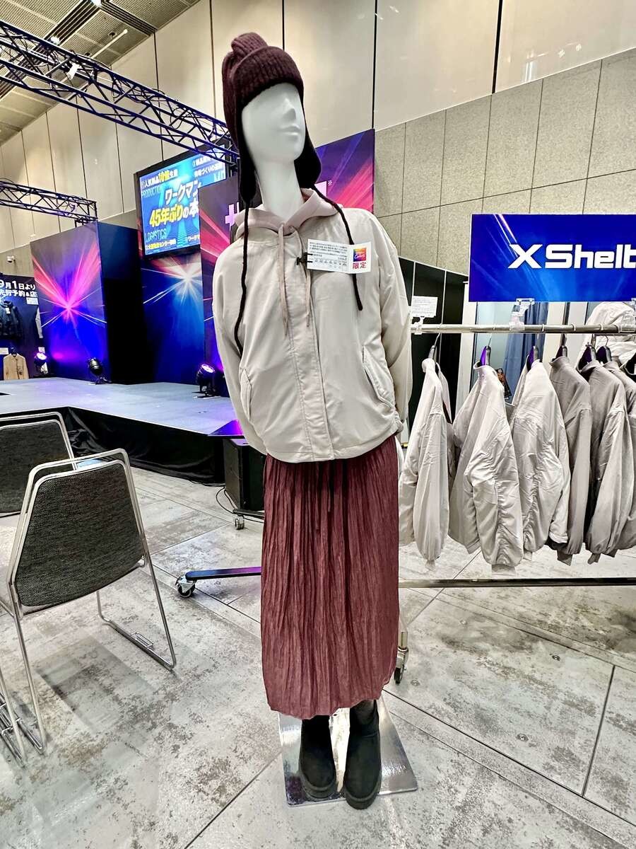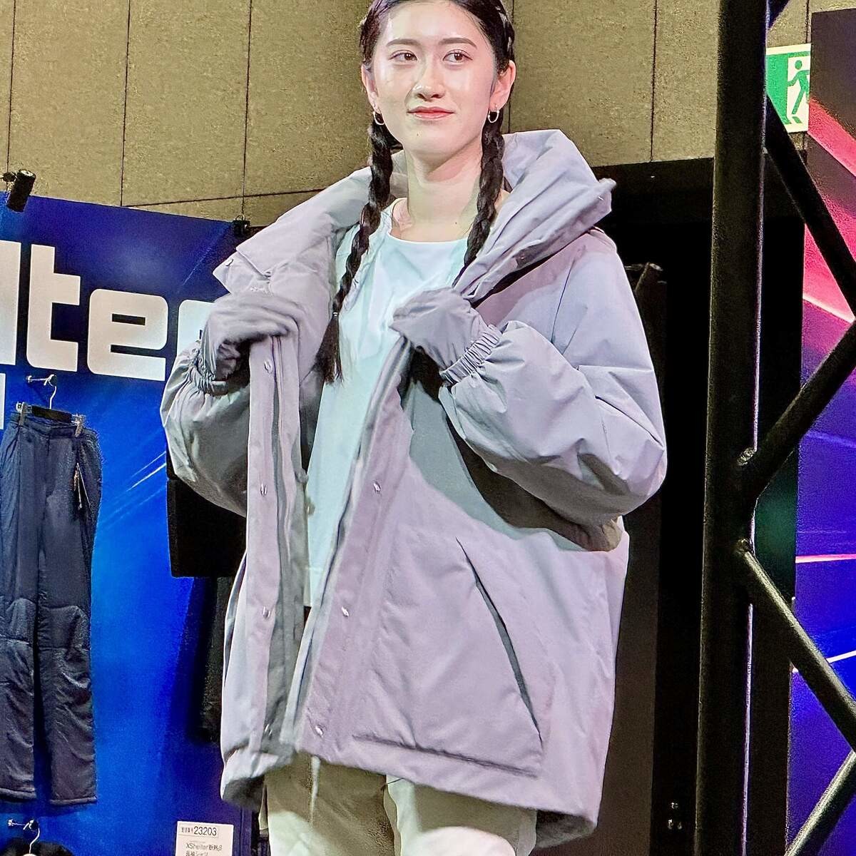 昨年秋冬に発売したXshelterのレディース向けウェアは1点のみ。それがこの「エックスシェルター 断熱αレディース防水ウォームアウター」です。当時と商品名は異なりますが、デザインや機能は同仕様。