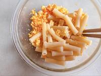 ②にオリーブオイルと塩を加え、マカロニを入れて混ぜましょう。