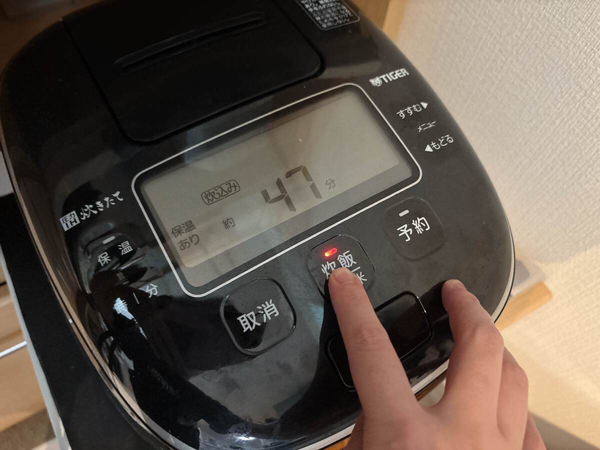 よくかき混ぜたら、炊飯スイッチをON!ここまでたったの1分足らず、あとは炊けるまで待つだけです♪