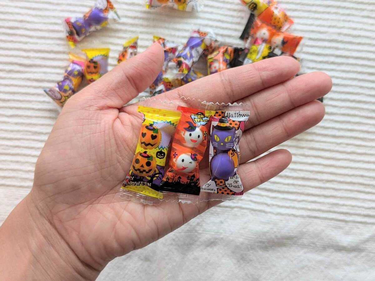 理由:いつものお菓子のパッケージが、ハロウィン仕様になるだけで気分が盛り上がります!どれもバラまきにぴったりの個包装なのも◎