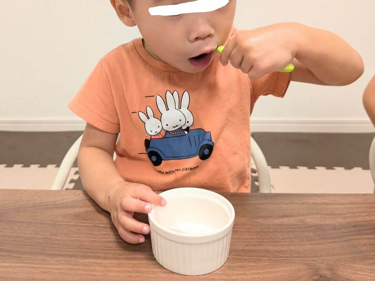 やわらかいので、お皿に移せば小さな子どもでもスプーンで切って食べられます。念のため、大人は注意して見守ってくださいね。