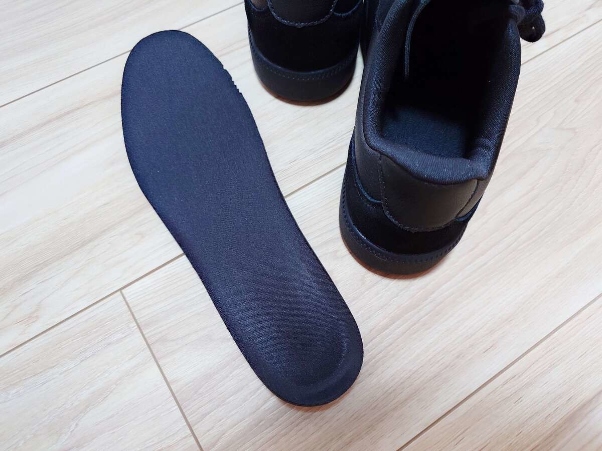 中敷を比べてみると、撥水スニーカーは土踏まずが特徴的で足のかたちにフィットしてくれました。