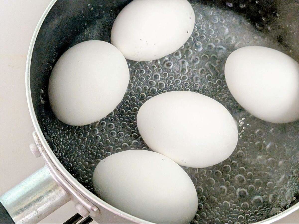 最初はいつもの茹で卵を作る手順と一緒です。時間のない方は“茹で時間6分”だけ頭に入れていつも通りに作り、作り方⑤まで飛ばしてOK!