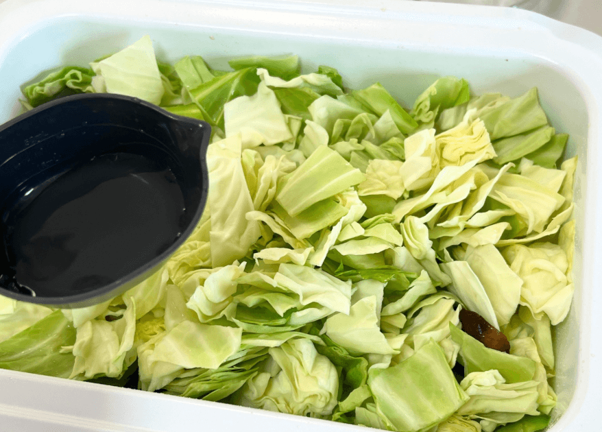 水をまわしかけると、野菜がしんなりとしてきます。筆者はフタをして蒸し焼きのようにしました。
