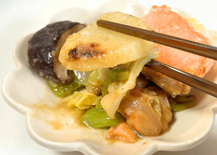 最初はこの合わせ調味料だと味が濃いのでは?と感じたのですが、野菜からのたっぷりの水分と混ざっていい感じに♪