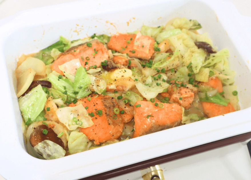 今回作るのは、日本テレビ『キユーピー3分クッキング』で料理研究家・大原千鶴さんが紹介した、ホットプレートで作る「秋鮭のちゃんちゃん焼き」。