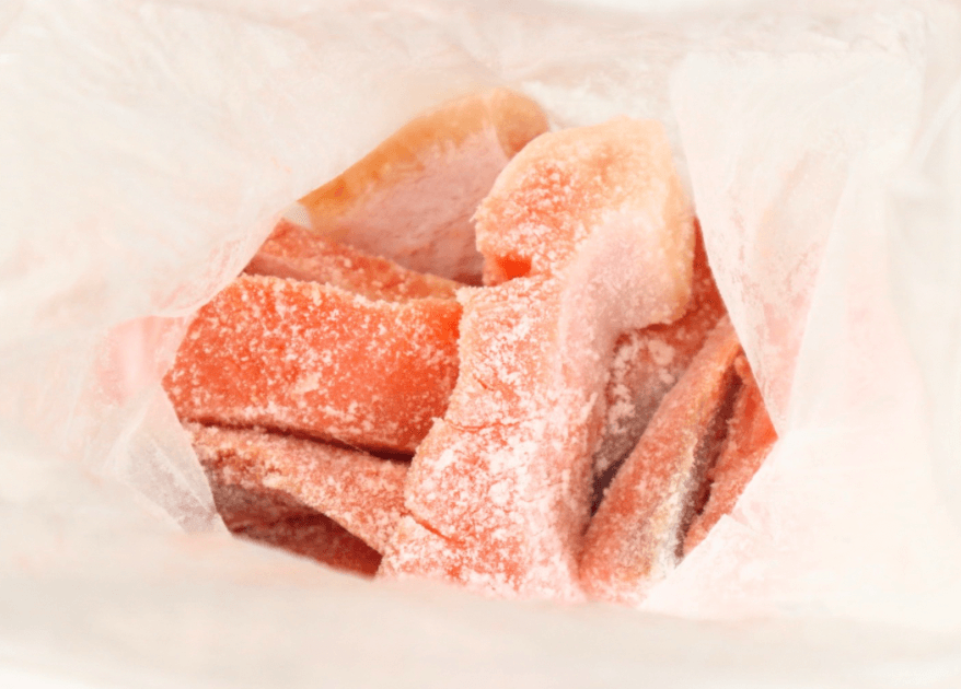 筆者はポリ袋に切った鮭を入れ、振るようにして片栗粉をまぶしました。