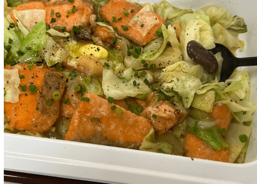 野菜たっぷり……というよりもはや"野菜もりもり"、そして大きめの鮭も存在感がありますね!