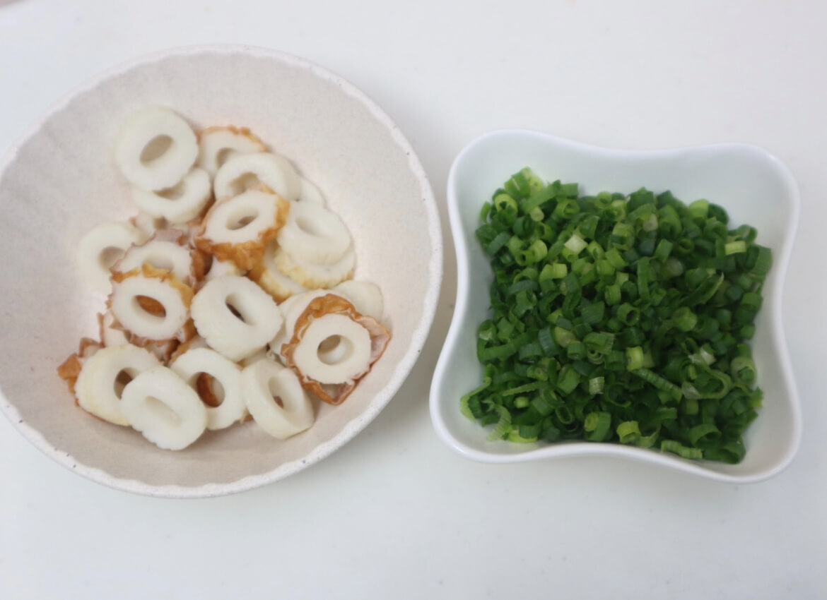 火を通したちくわはボリューム・弾力が増していて、長いものふわふわ感と同様に満足感をアップしてくれているんです。