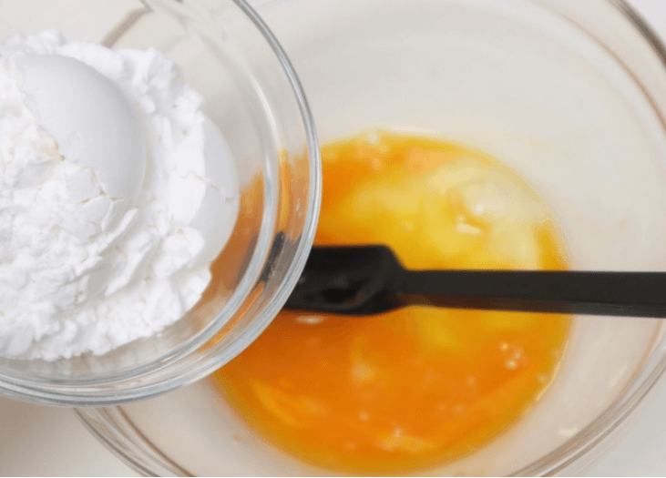 ボウルに卵を溶きほぐしたら、片栗粉と塩を加えて混ぜます。