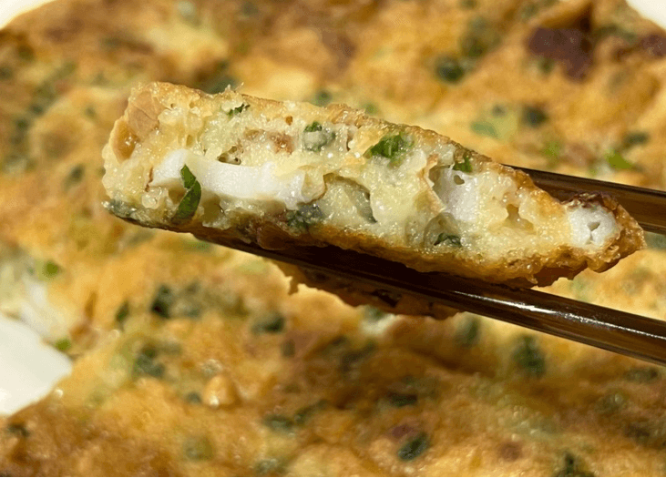 お好み焼きと一見似ていますが、キャベツではなく青ねぎを使うところや、ソースではなくぽん酢を使うところが違うポイントですね。