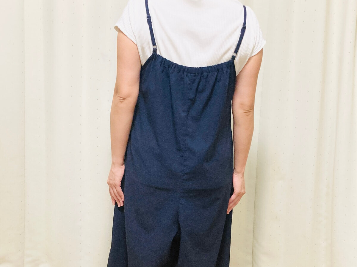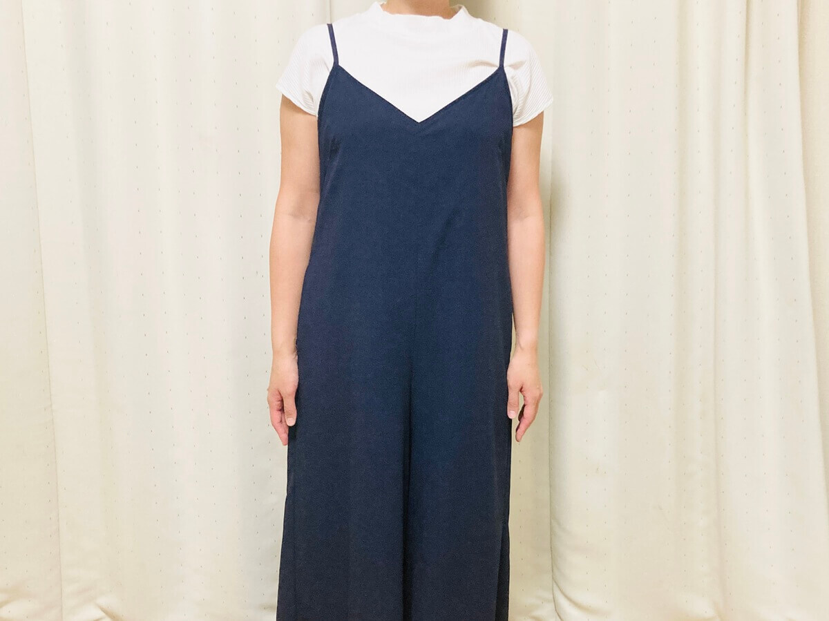 シンプルなデザインで体型をすっきり見せてくれる無印良品のサロペットです。