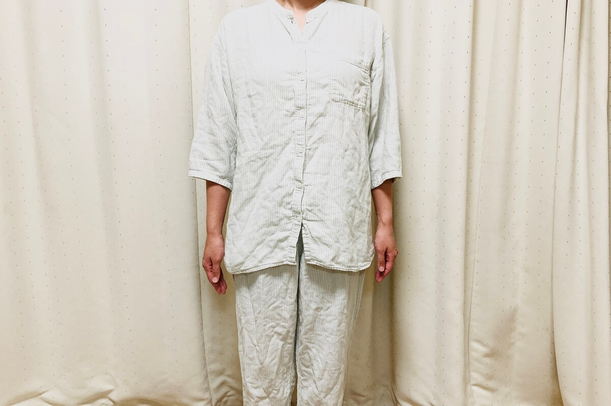 やわらかくて軽い、体になじむガーゼ素材の七分袖パジャマ