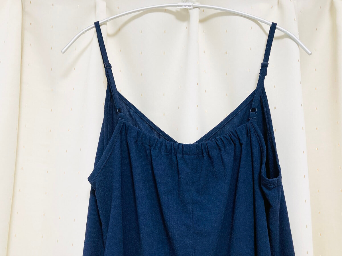 デザインは胸元がVネックで、ボトム部分はワイドシルエット。