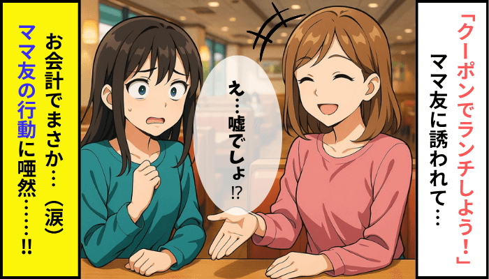 「クーポンあるからランチしよう!」ママ友に誘われてファミレスへ→「そんな!嘘でしょ…(涙)」お会計で唖然!
