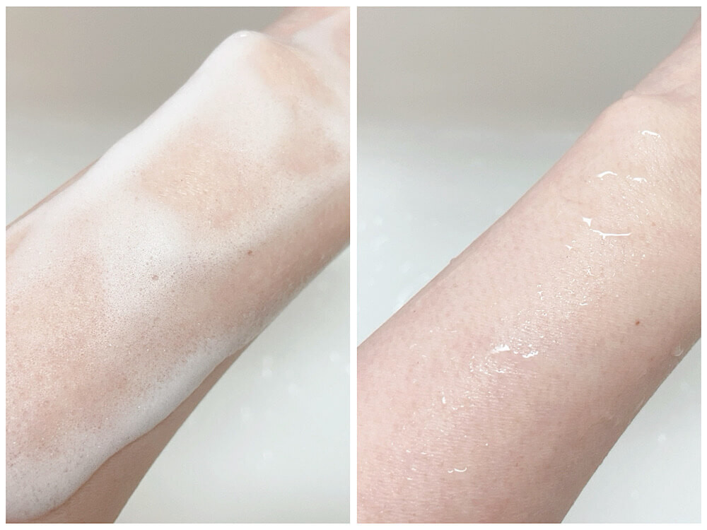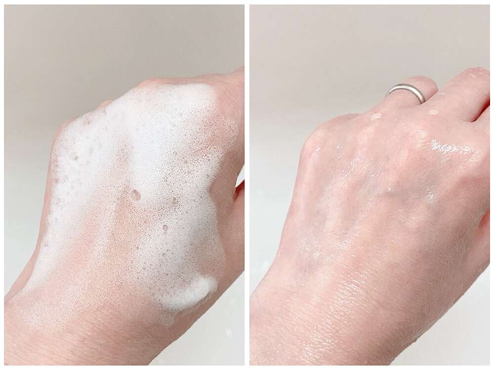 洗い上がりはしっとり→さらっとの順に変わって、肌がつっぱらないのがうれしいポイント。
