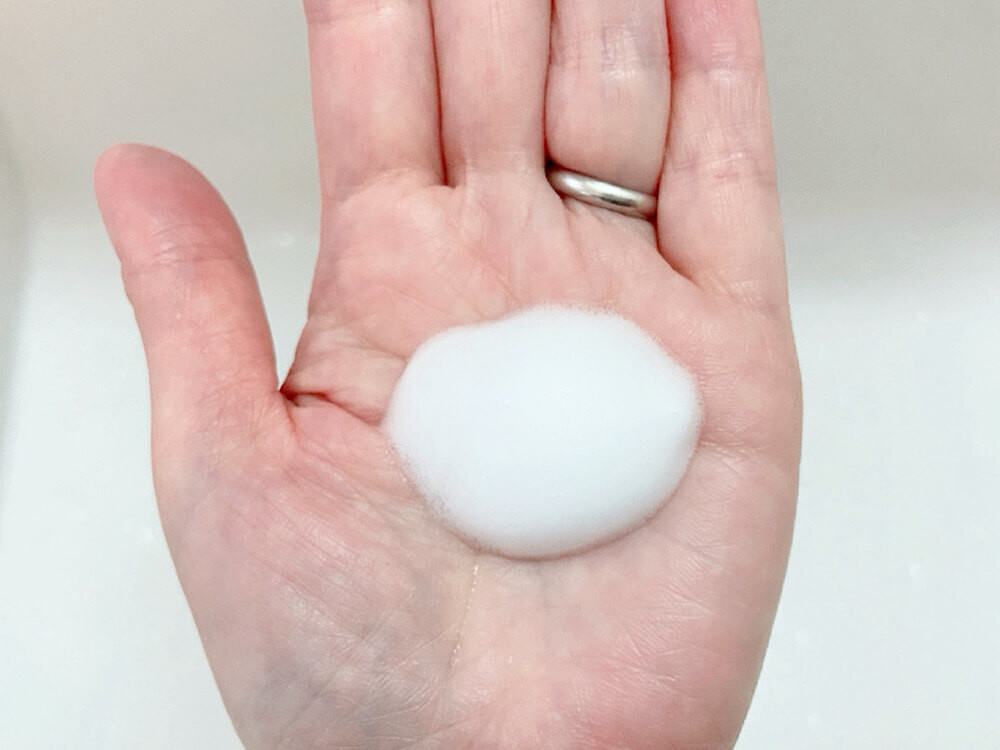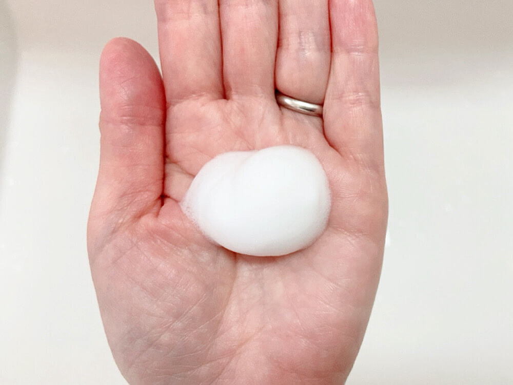 ふわっとなめらかな泡で、1プッシュが両手にちょうどいい量。 ポンプも軽く押せて、片手でも使いやすいです。