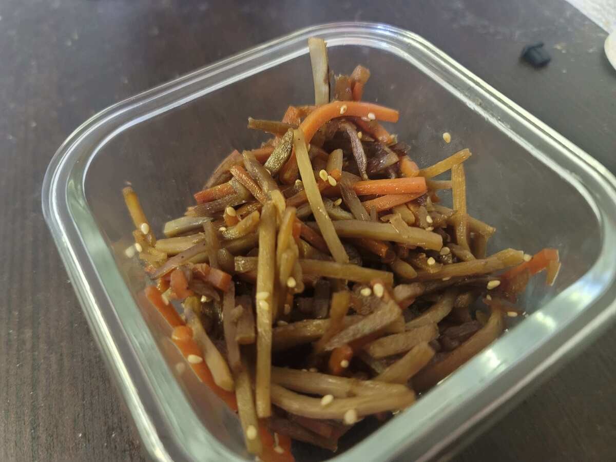 定番のきんぴらごぼうも、フライパンで炒めて味付けするだけで完成。