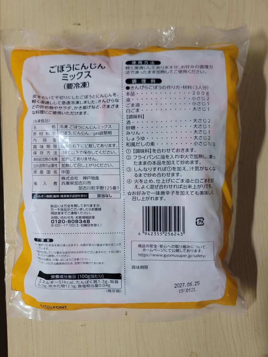500g198円(税別)で、ごぼうとにんじんが細切りにカットされているので、下処理不要でそのまま調理できます。
