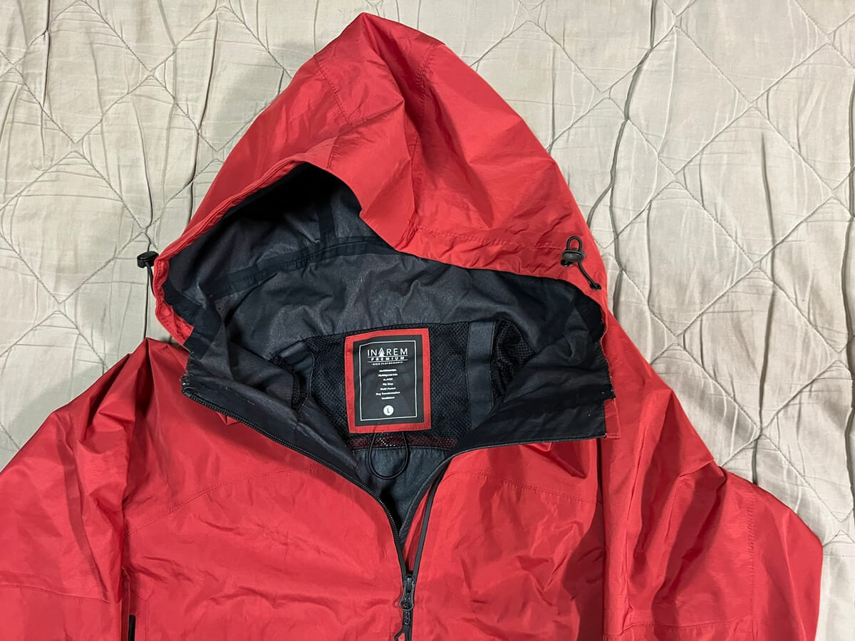 大型のフードが頭部の雨水入り込みをしっかりガード。