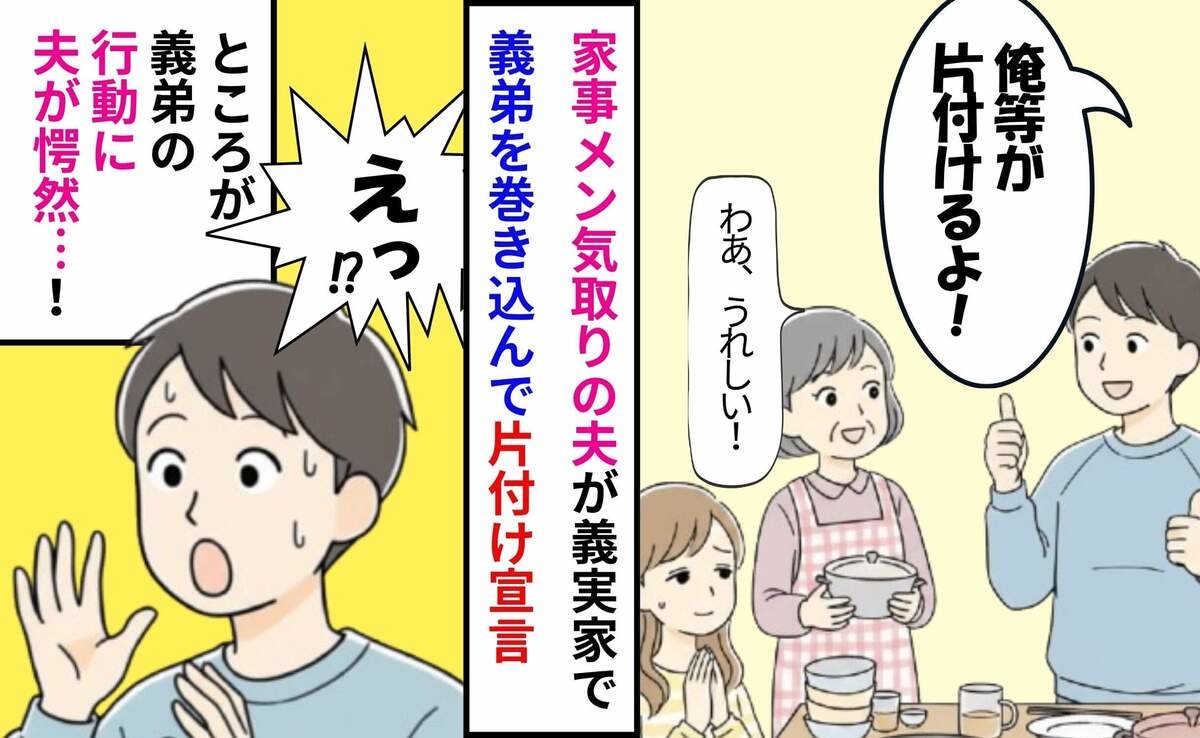 「後片付け、任しとけ!」家事メン気取りの夫が義実家で宣言!→義弟の行動で赤っ恥