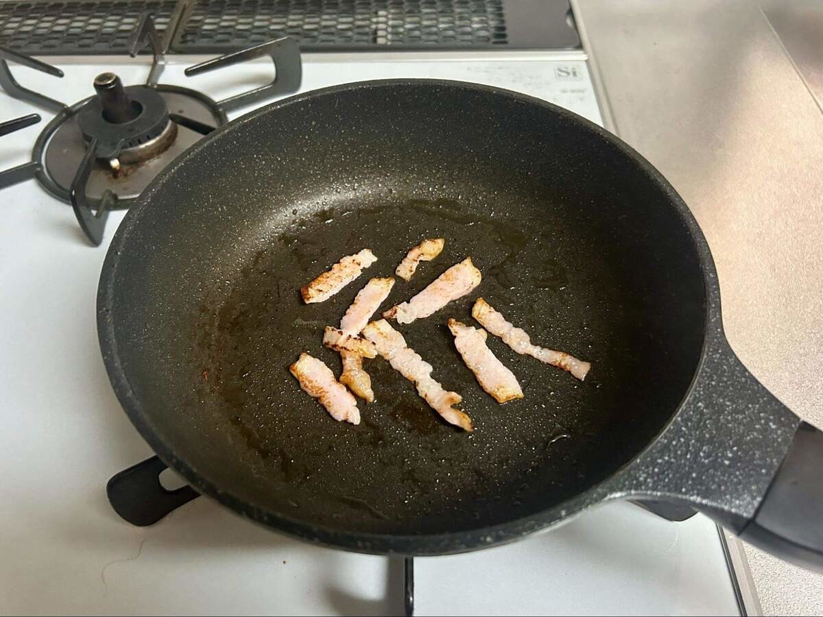 作り方④ベーコンを炒める