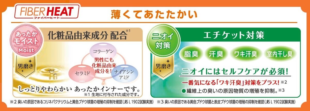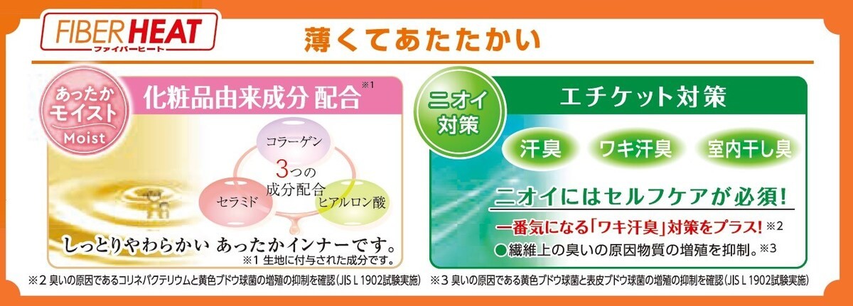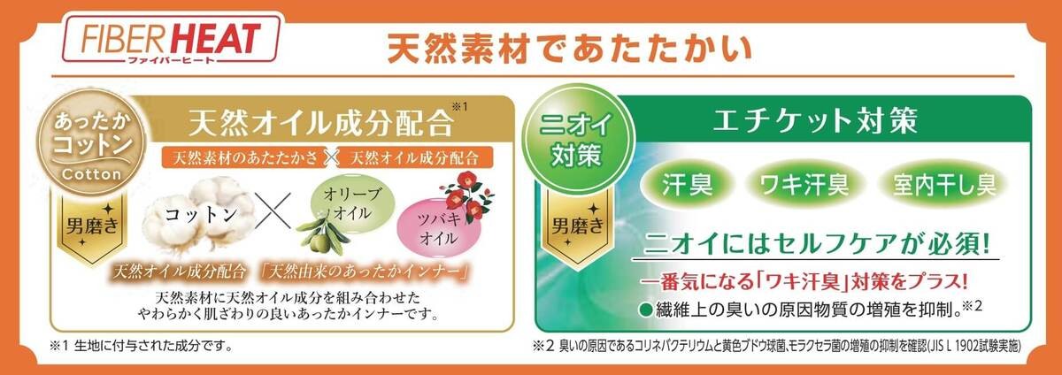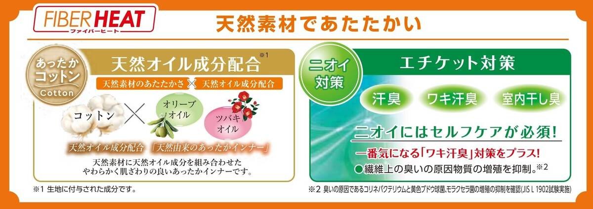 あったかモイストインナー同様に、今年は新たに「ワキ汗臭」対策をプラスし、ニオイ対策も進化。さらに、環境に優しいオーガニックコットンが使用されています。