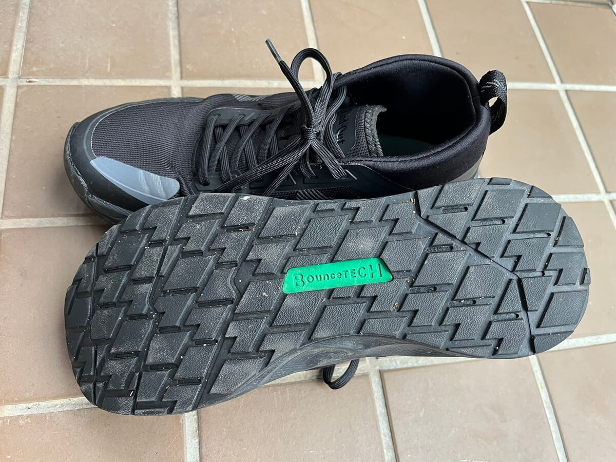 「防水シューズハイバウンスレイン」は靴底から5cmの高さまで防水設計されたランニングシューズです。