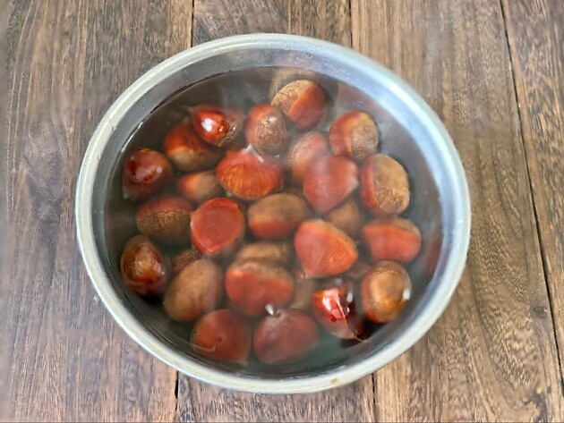 鬼皮のむき方①生栗を熱湯につける