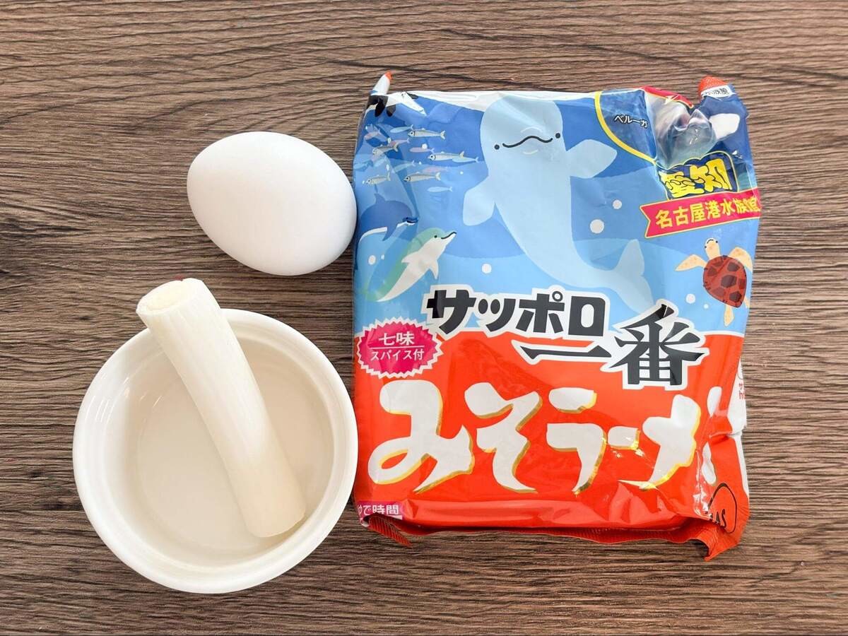- インスタントラーメン(サッポロ一番 みそラーメン)…1袋