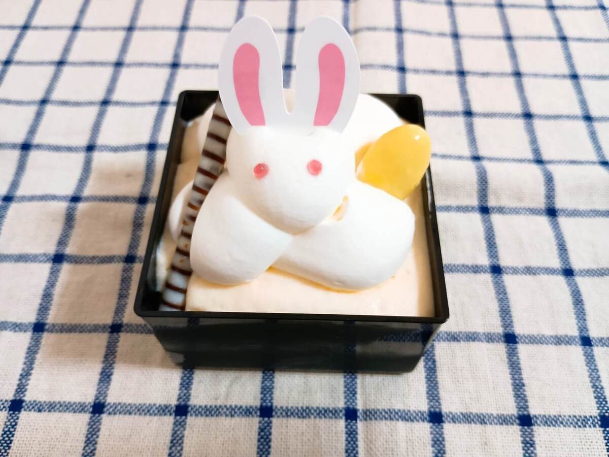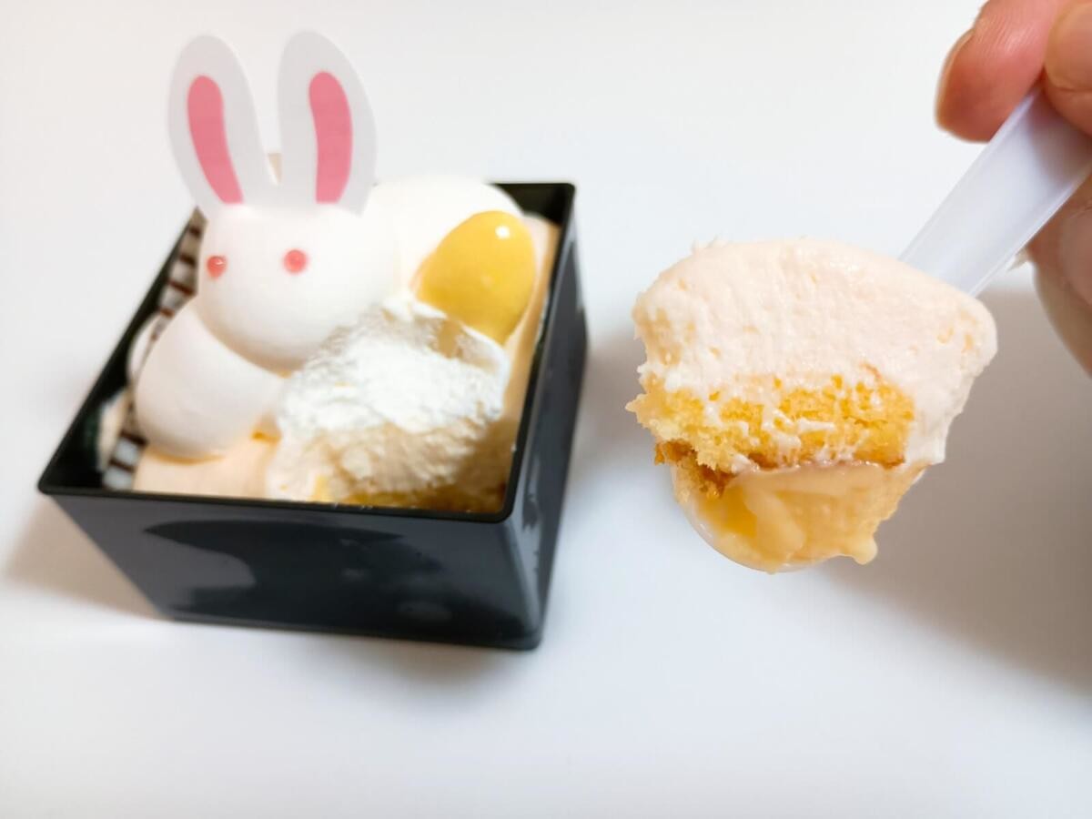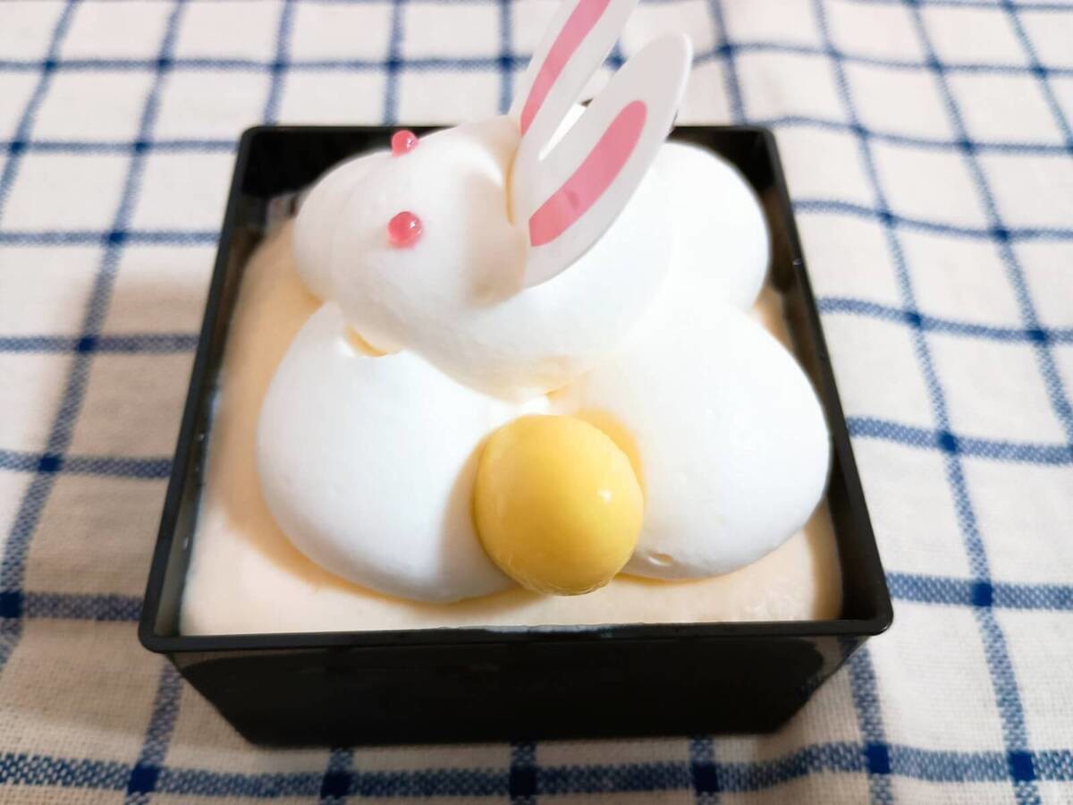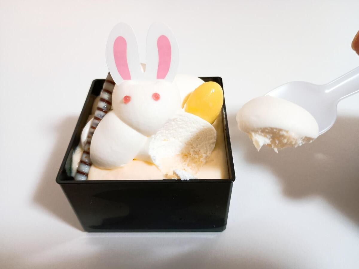 中身は想像よりも、クリーム部分が多い印象。カスタードクリーム層は、うさぎ部分の生クリームとプリンの甘さを引き立てるためか、味自体は控えめ。
