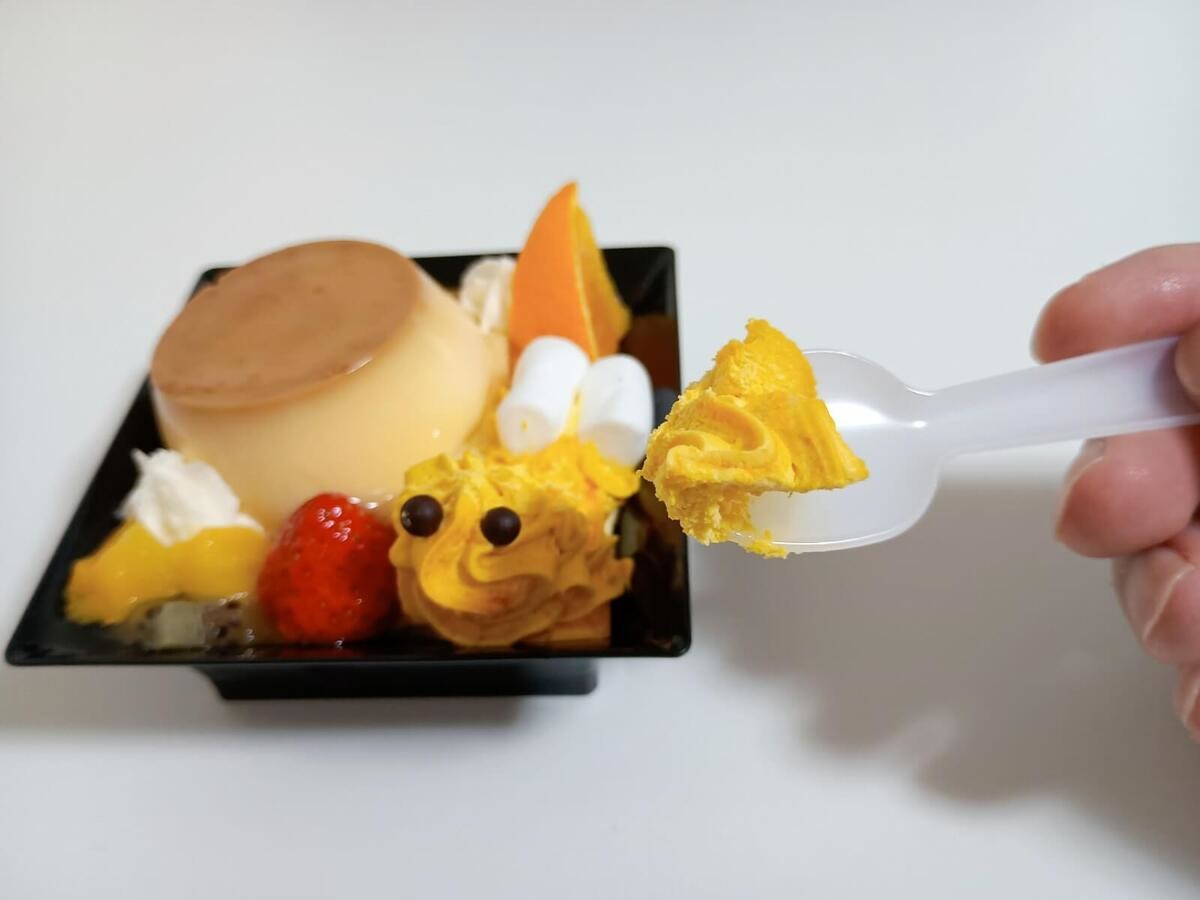 おばけのかぼちゃクリームは、形を維持するためかややかため。味はかぼちゃ風味で、季節を感じられます。