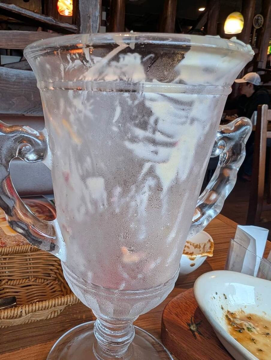 ただ……食べれば食べるほど、底が深くなり食べにくくなります(高さ25センチの巨大グラス)。