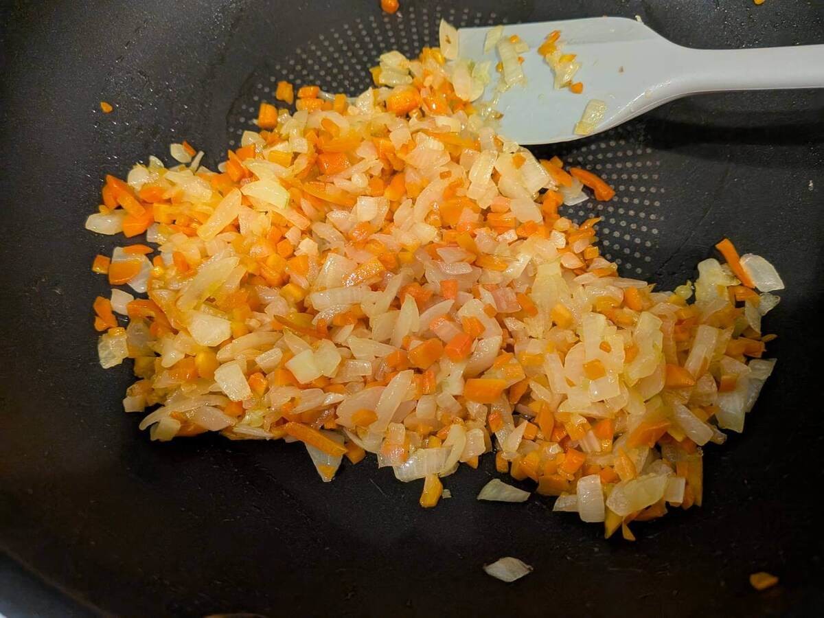 作り方⑤炒めた野菜とひき肉を合わせて仕上げる