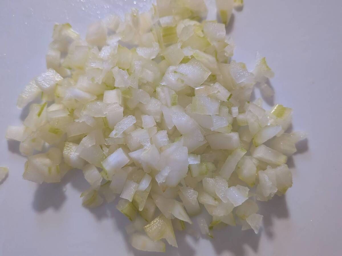 タマネギ、ニンジン、セロリをそれぞれみじん切りにします。