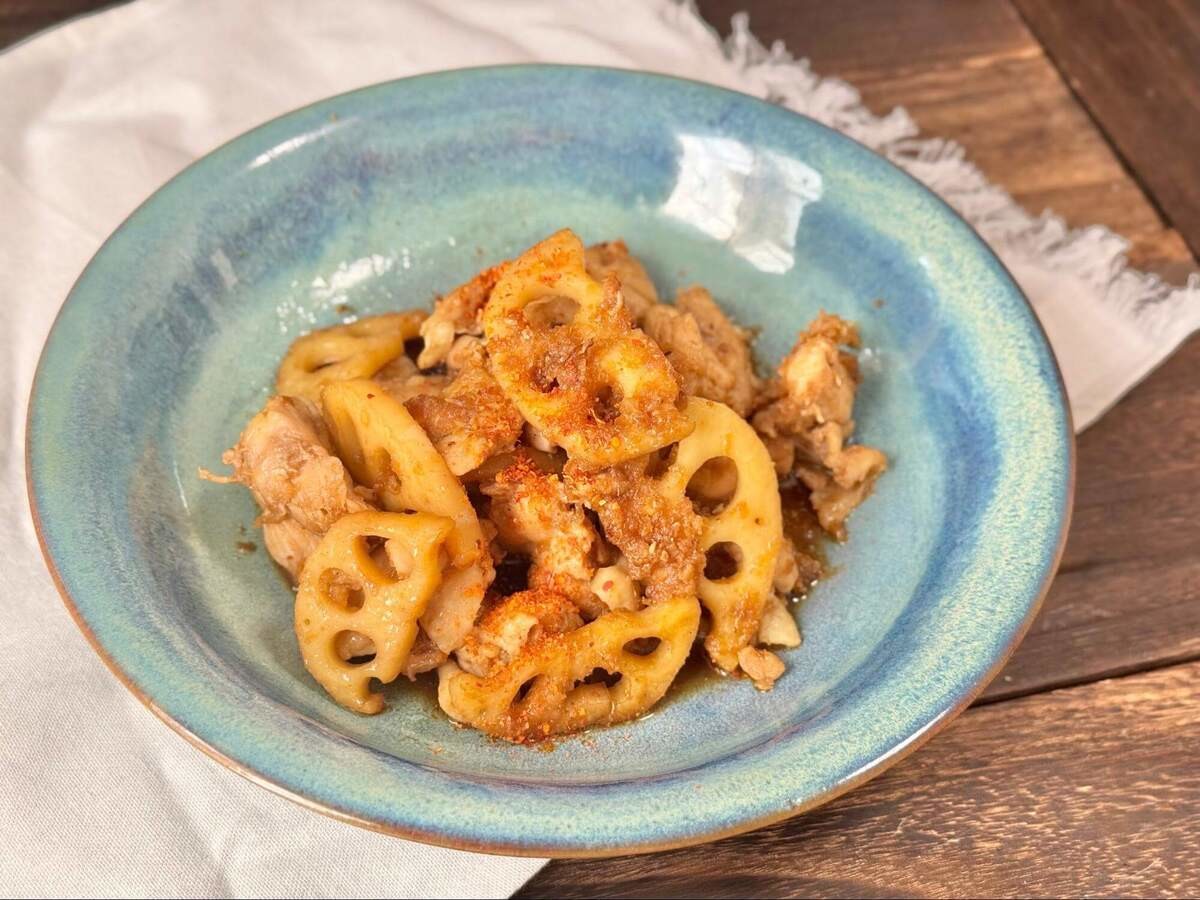 新生姜の効いた甘辛ダレが、ジューシーな鶏もも肉やシャキシャキ食感のレンコンとよく合います。