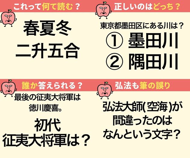 「最後の征夷大将軍は徳川慶喜。初代征夷大将軍は?」【昔習ったのと違うかも?】→「間違ってた!」「覚えておきます」