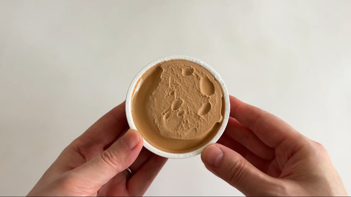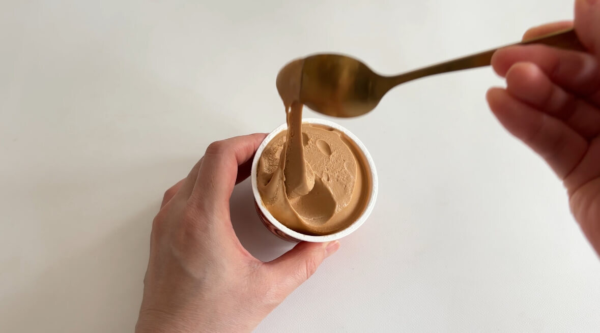 横から手で押すと、カップがぐにゃっとなるほど、こちらもねっとりとしたアイスです。