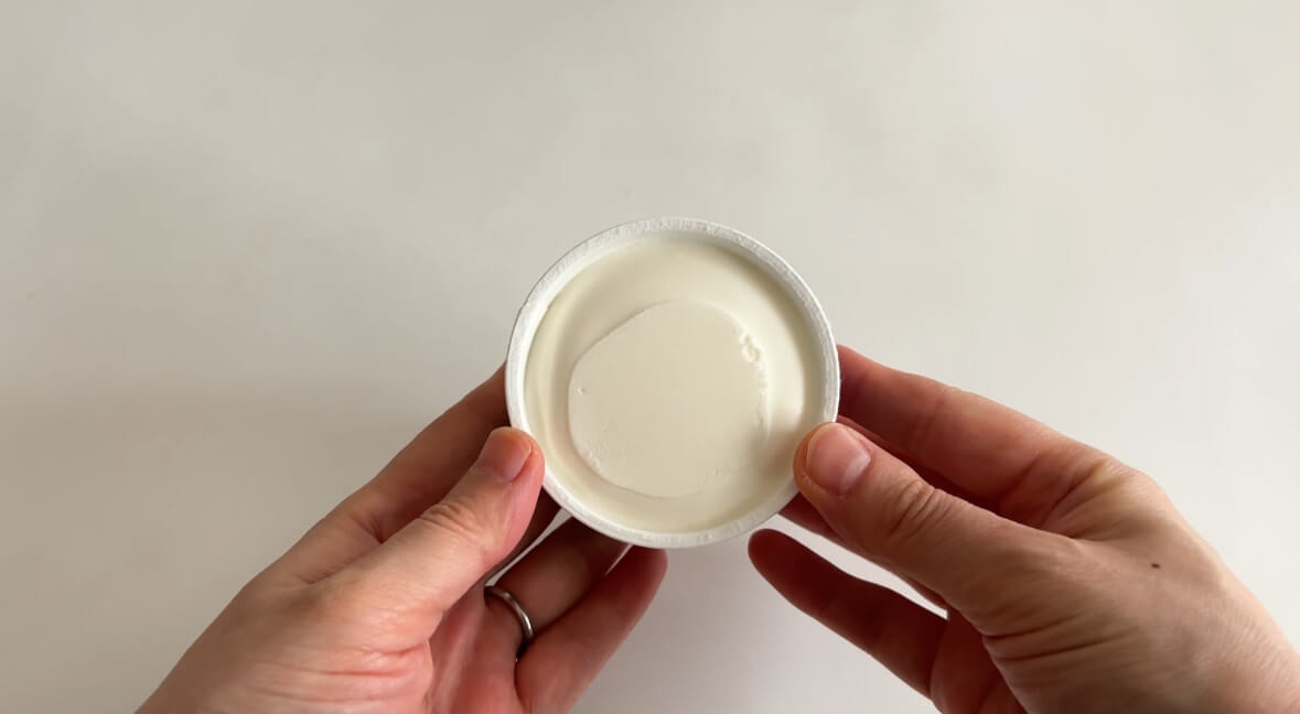 フタを開けると、ゲレンデのように真っ白! こちらも北海道産生クリームを使用し、さらに自家製ヨーグルトを加えたこだわりの一品。