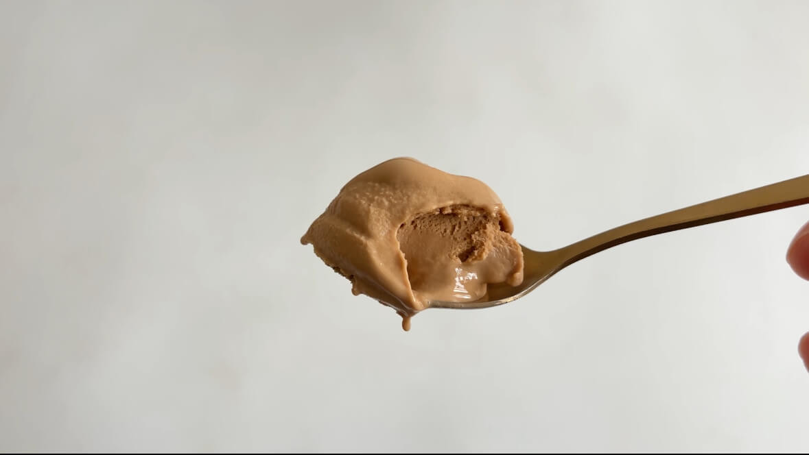 口どけはなめらかで、ねっとりしているのに重くない。 キャラメルよりも軽やかで、どんな食事の後にも合うバランスの良いアイスです。